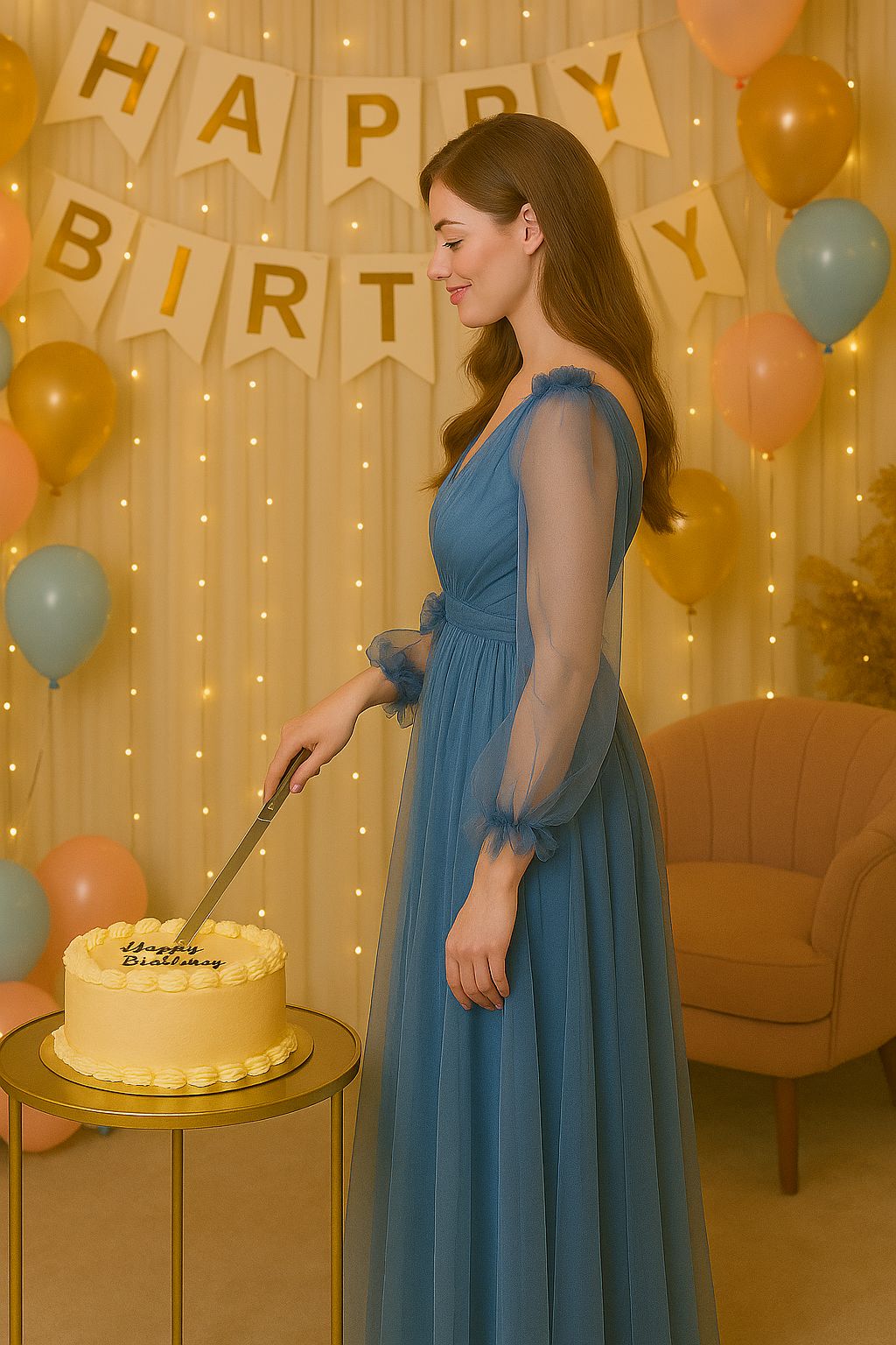 Whether you’re hosting a grand birthday bash, attending a formal gala, or posing for a photo shoot, the Celestial Bloom gown guarantees a regal presence. Pair it with crystal earrings and a soft updo to complete the look, or add a tiara for a true princess moment.