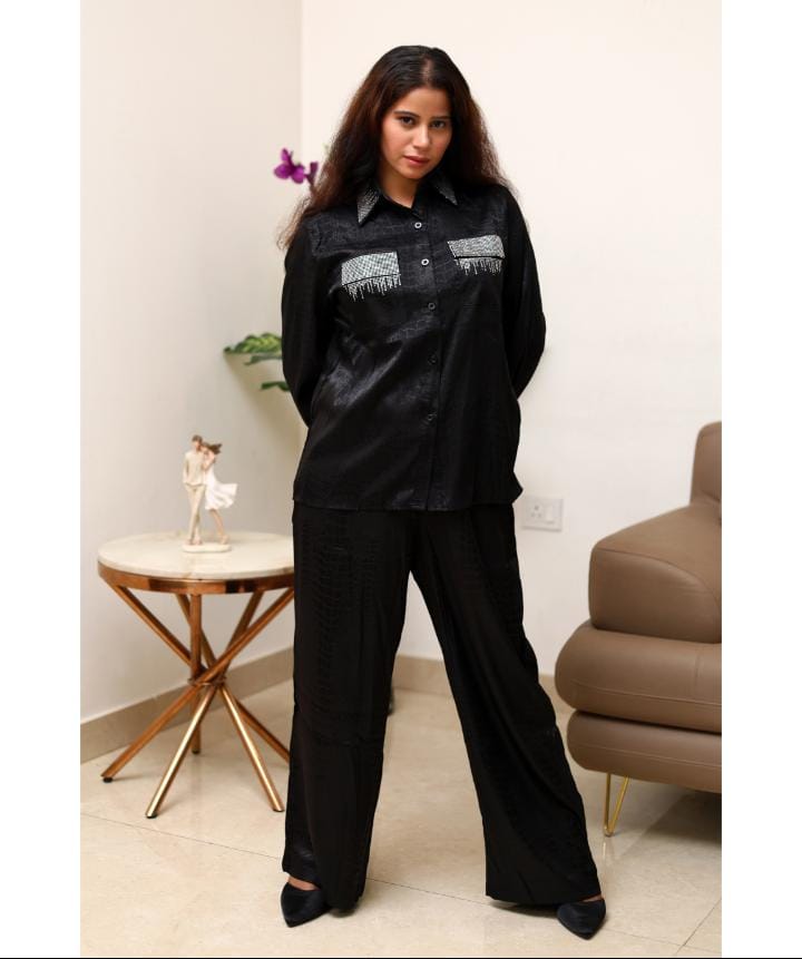 This black two-piece co-ord set is your solution to “what to wear” moments — powerful, poised, and always on point.