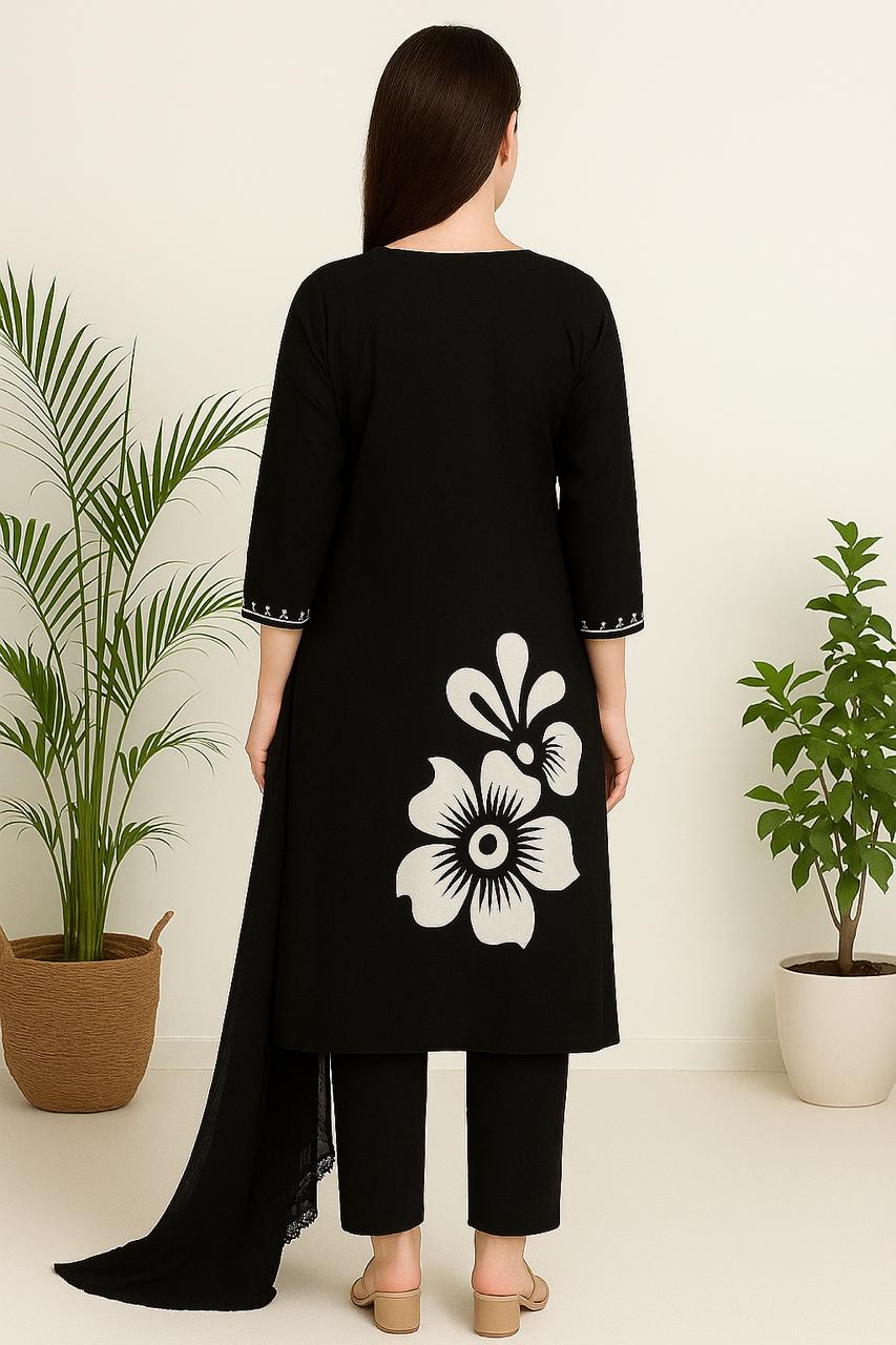 Elegant Black Cotton Kurta Step into elegance and comfort with our Black Cotton Kurta Set with Dupatta, a perfect blend of traditional charm and modern style. Crafted from premium quality cotton fabric, this ethnic ensemble is designed for women who value both style and comfort. The breathable, lightweight cotton material makes it ideal for all-day wear, keeping you comfortable in all seasons.