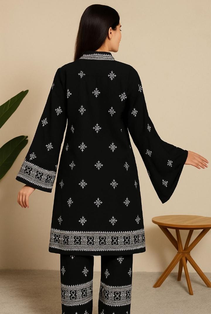 Elegant Black Embroidered Co-Ord Set for Women Make a bold statement with timeless grace in this Black Embroidered Co-Ord Set for Women, a perfect fusion of tradition and elegance. Whether you’re attending a festive event, a family get-together, or want something ethnic-yet-modern for everyday wear, this kurta-palazzo set will elevate your wardrobe effortlessly.