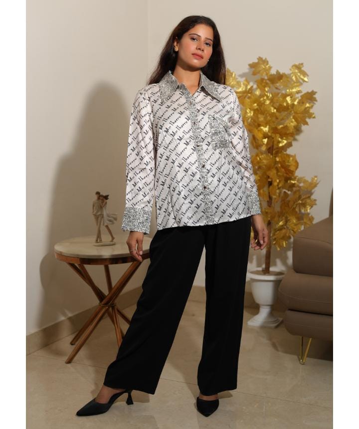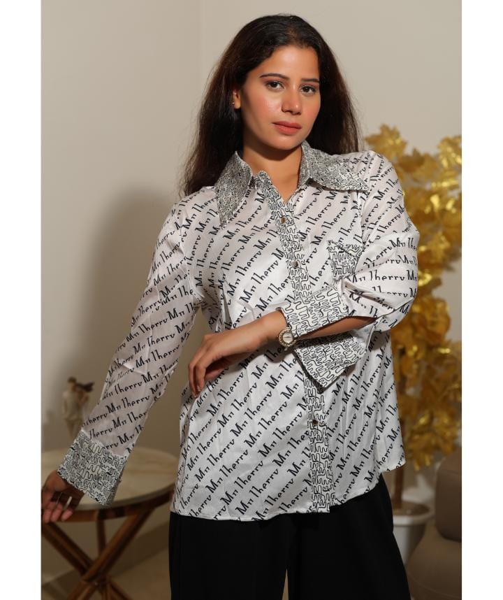 From the collection of BhuviStyles White Printed Shirt Elevate your everyday wardrobe with this stylish White Shirt for Women, featuring a modern printed design and relaxed yet structured silhouette. Crafted for women who appreciate timeless elegance with a contemporary twist, this shirt strikes the perfect balance between comfort and fashion.