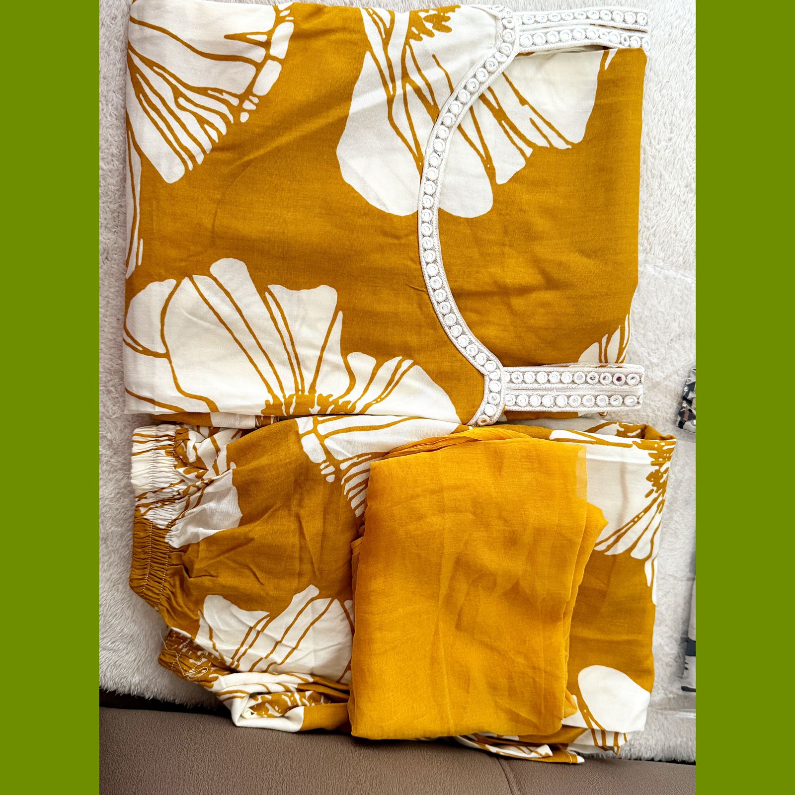 Pair it with juttis or kolhapuris for a traditional look, or with statement earrings and heels for a modern ethnic style. This yellow sleeveless rayon kurta set is not just a garment—it’s a celebration of comfort, elegance, and vibrant fashion.
