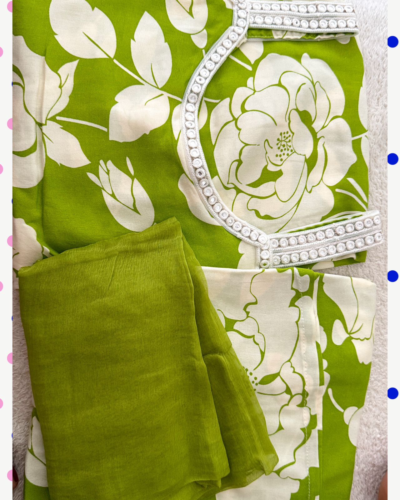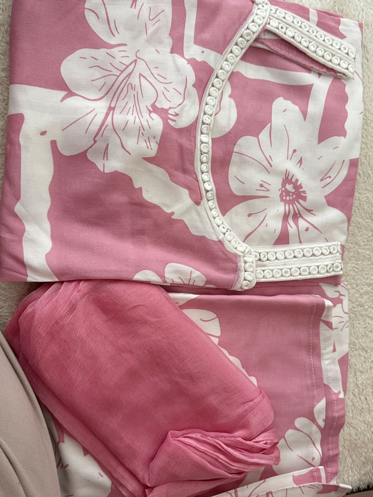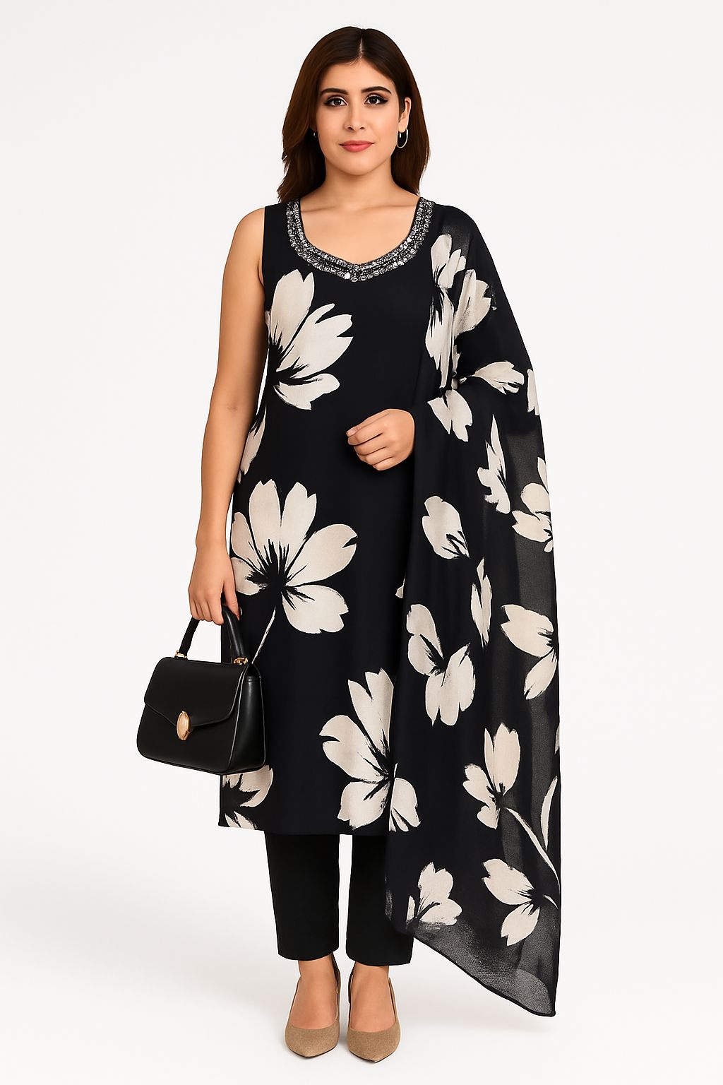 The kurta features a classic round neckline for a timeless look, while the sleeveless cut adds a touch of modern flair. The straight-fit silhouette flatters all body types and ensures ease of movement, whether you’re attending a family gathering, a festive celebration, or a casual outing. The matching bottoms are tailored for comfort, while the coordinated dupatta completes the look with elegance.